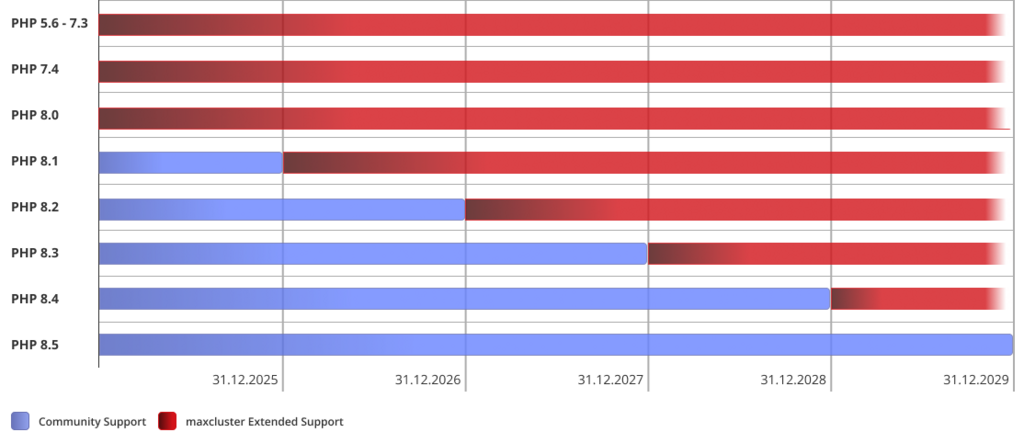 | PHP 8.5 | until 31.12.2029 | Current version | as 01.01.2030 |
