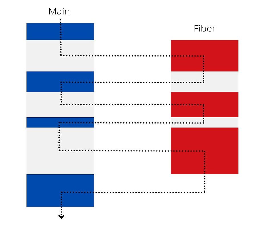 Eine Fiber wird über den Main-Thread gestartet, kann aber während der Ausführung nicht von diesem unterbrochen werden. Nach dem Anhalten oder Beenden einer Fiber kann ihr Neustart wiederum nur über den Main-Thread erfolgen.